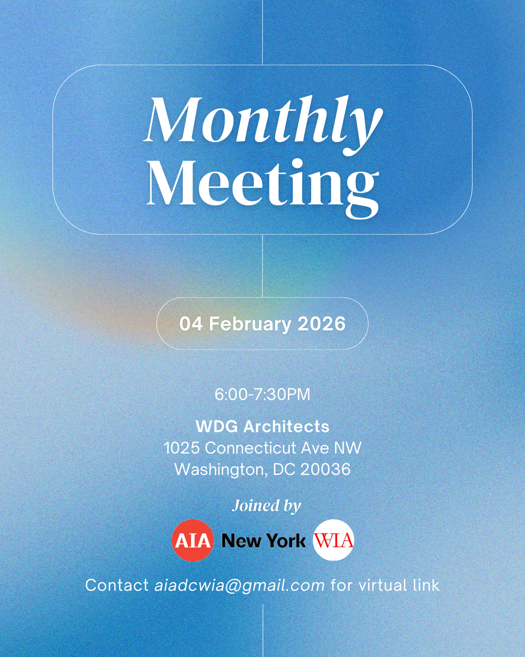 Please join AIA|DC's Women in Architecture and Design for our monthly meeting. We will be joined by AIA|NY's Women in Architecture and Design.